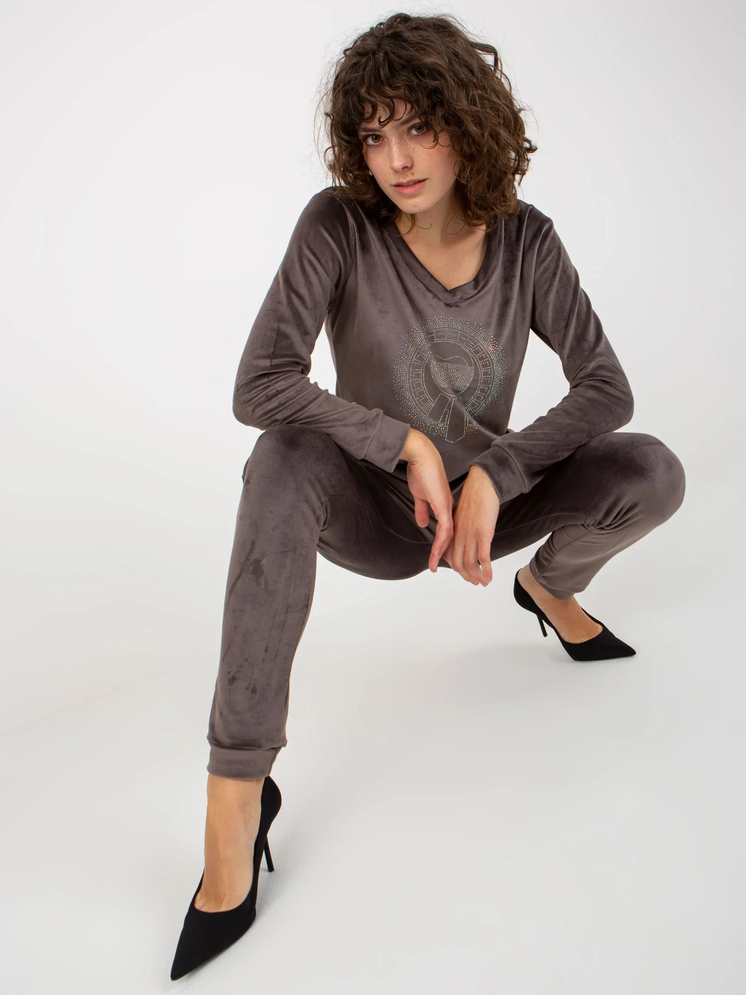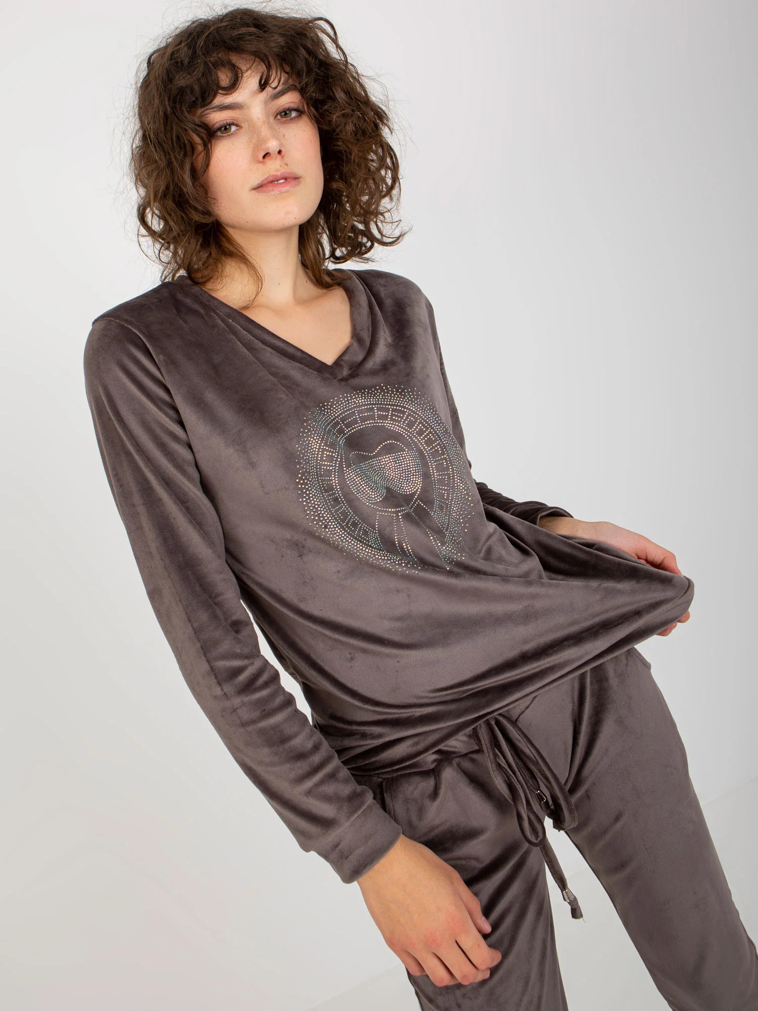 Rozměry soupravy ve velikosti S/M měřené na plocho: šířka v podpaží - 52 cm, délka halenky - 64 cm, délka rukávů - 58 cm, šířka v pase - 34 cm, délka kalhot - 100 cm.