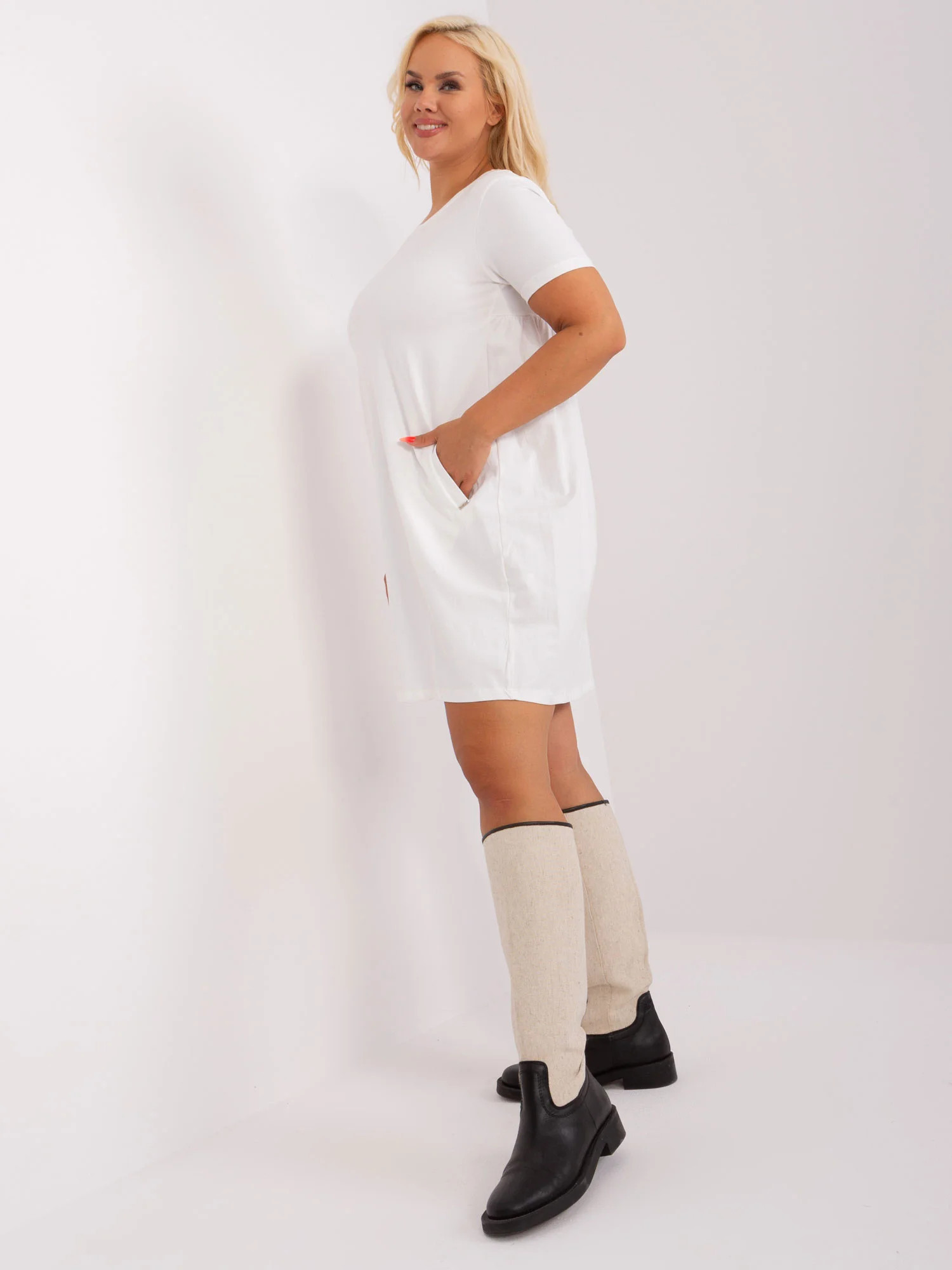Ecru každodenní plus size šaty z bavlny .