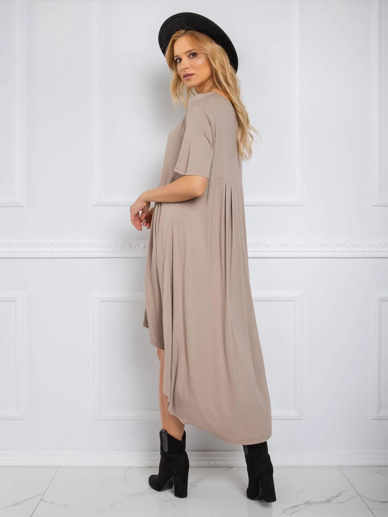 RUE PARIS Tmavě béžové volné šaty.