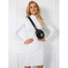 RUE PARIS Bílé přiléhavé šaty s rolákem.
