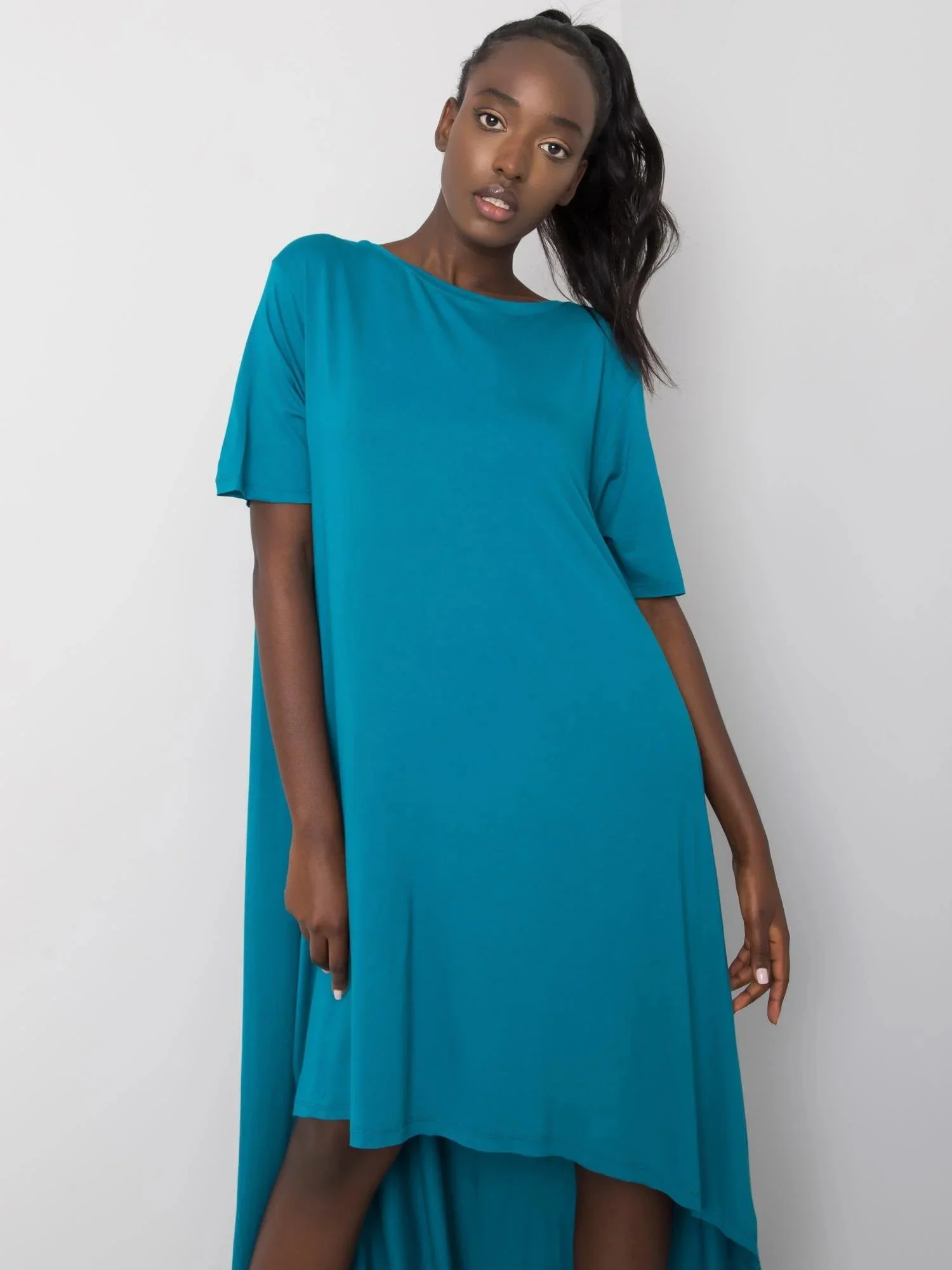 Modelka má na sobě velikost S/M. Rozměry modelky: výška 170 cm, poprsí 84 cm, pas 60 cm, boky 93 cm.