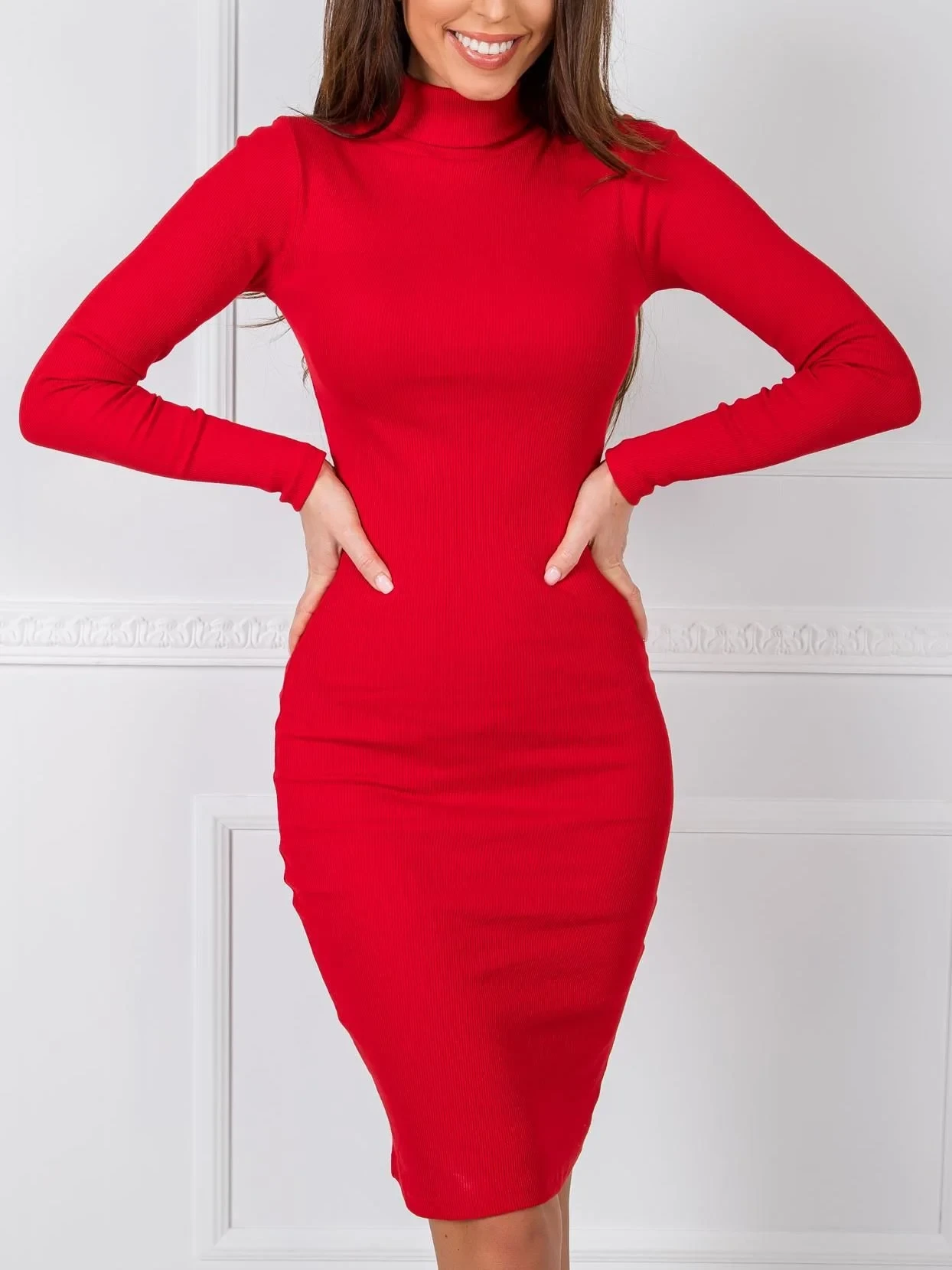 RUE PARIS Červené šaty s rolákem.