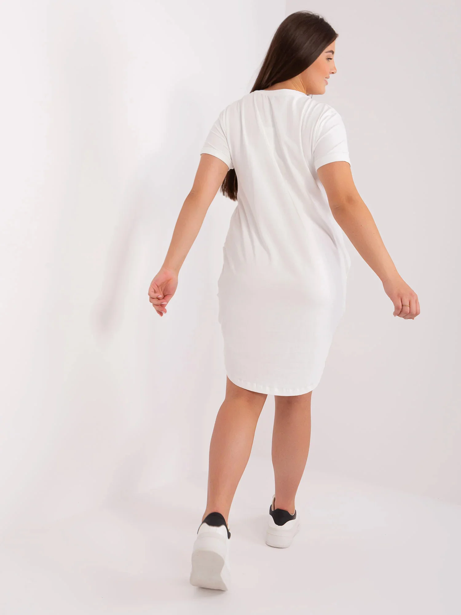 Základní bavlněné šaty plus size v barvě ecru.