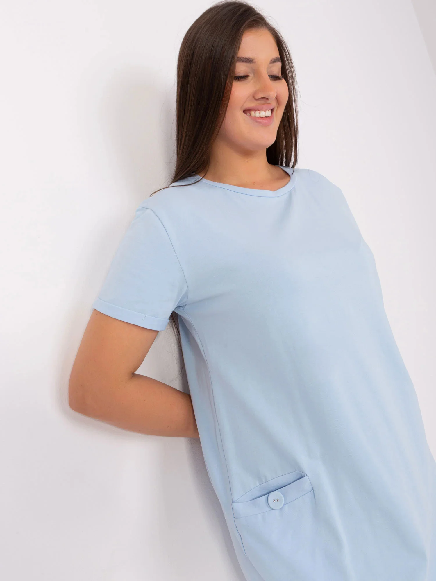 Světle modré plus size základní šaty z bavlny.