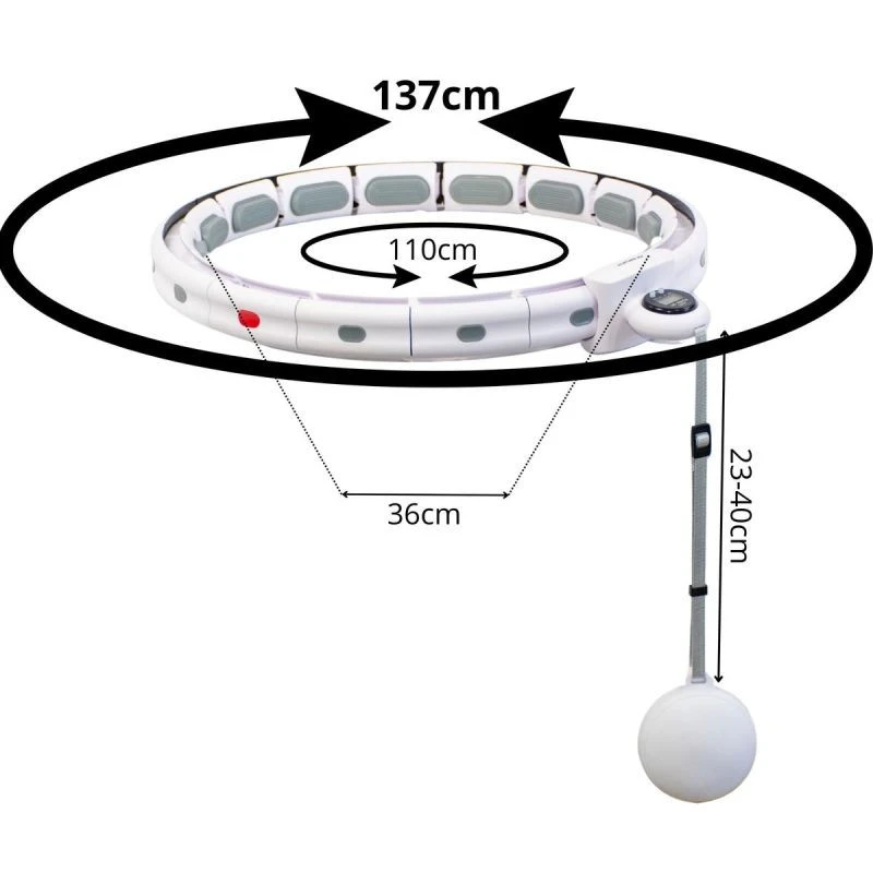 Díky systému odnímatelných segmentů můžete obruč hula hoop snadno přizpůsobit své postavě a úrovni tréninku. Díky snížení počtu prvků je kolo těsnější a intenzivnější na používání a plný obvod přibližně 110 cm umožňuje pohodlný trénink i osobám se širším pasem.
