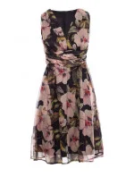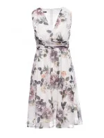 100% polyester Tyto elegantní šaty jsou vyrobeny z lehkého pruhovaného šifonu s květinovým potiskem, mají hluboký výstřih do V a ozdobný nabíraný pásek v pase. PODROBNOSTI O PRODUKTU: tkaná látka - potištěný šifon šaty bez rukávů střihu s hlubokým výstřihem do V ozdobný pásek zavinutý uprostřed skrytý zip délka ke kolenům plně podšité naše modelka měří 166 cm a nosí velikost S