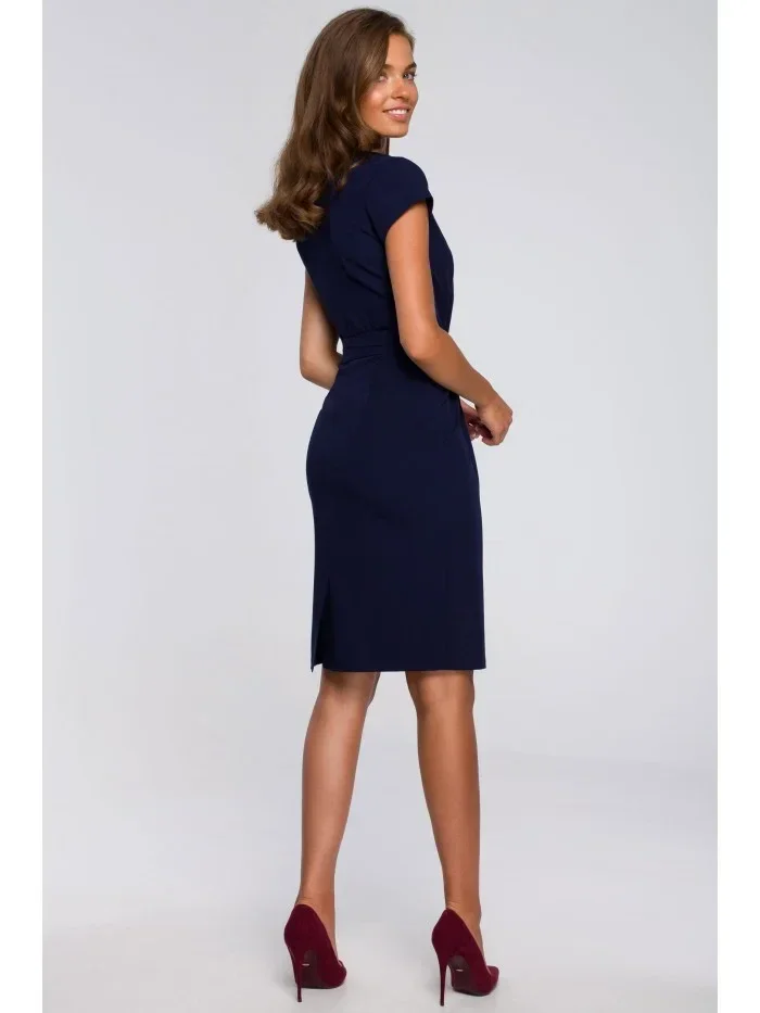 Přidání recenze k S239 Tužkové šaty s páskem na zavázání - tmavě modré