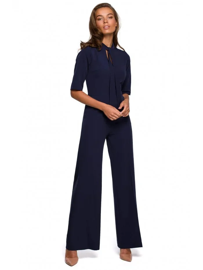 S243 Elegantní overal se zavazováním za krkem - tmavě modrý