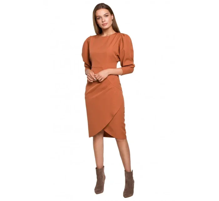95% polyester 5% elastan Dodejte svému večernímu outfitu trochu dramatičnosti díky těmto pouzdrovým šatům s přiléhavou siluetou a úžasnými zvonovými rukávy, které krásně splývají s každým vaším pohybem. PODROBNOSTI O PRODUKTU: pouzdrové šaty z tkané látky s délkou pod kolena výstřih do V tříčtvrteční volánové rukávy zadní větrací otvor skrytý zip na zádech Modelka měří 175 cm a nosí velikost S