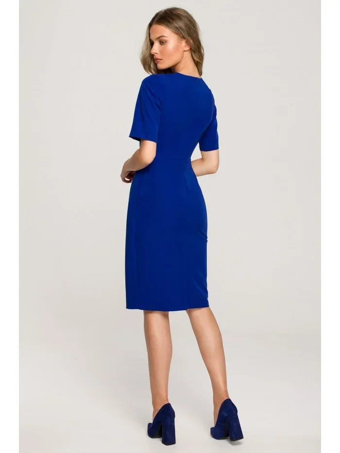 S317 Pouzdrové šaty s dvojitým předním dílem - královská modř