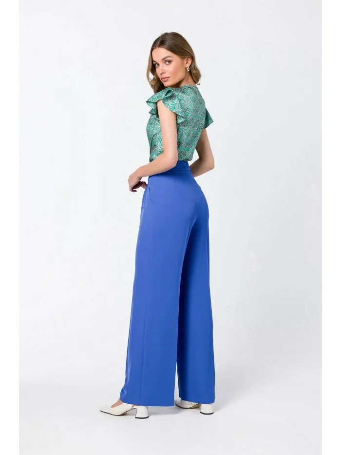 95% polyester 5% elastan Široké kalhoty se záhyby v pase - klasické a módní. PODROBNOSTI O PRODUKTU: tkaná látka pásek široké nohavice záhyby v pase skryté zapínání na zip na zadní straně boční kapsy Naše modelka měří 174 cm a nosí velikost S