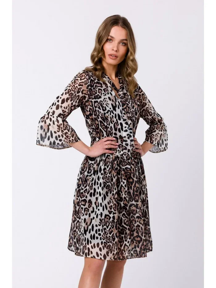 model 18360220 Šifonové šaty s vázaným výstřihem model 2 - STYLOVE