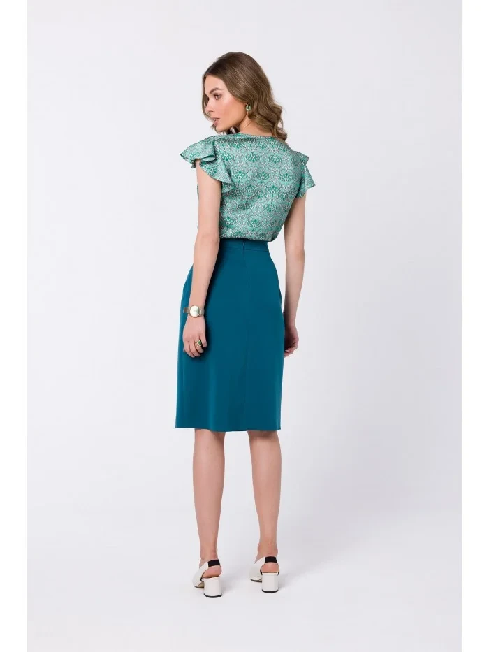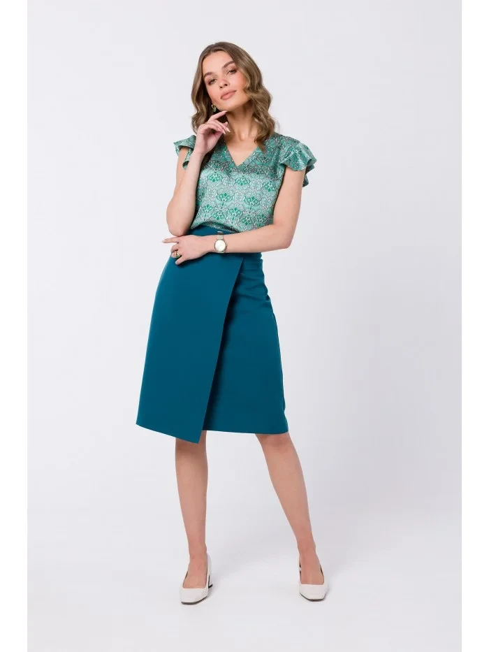 Přidání recenze k S343 Sukně áčkového střihu se zavinovacími detaily - modrá