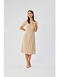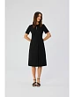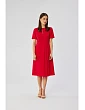 65% polyester 30% wiskoza 5% elastan PODROBNOSTI O PRODUKTU: tkané šaty s ozdobnými záhyby na bocích výstřih s klíčovou dírkou krátké rukávy s ohrnutím pod kolena skrytý zip na zádech bez podšívky naše modelka je 176 cm vysoká a nosí velikost S navrženo a vyrobeno v Polsku