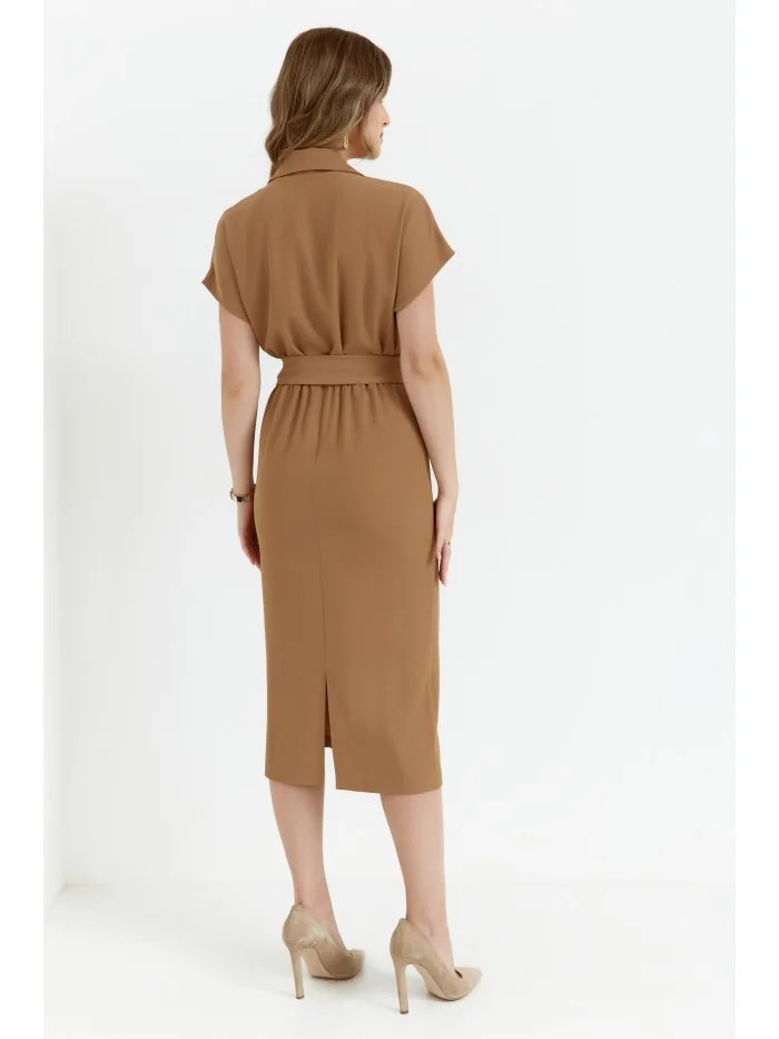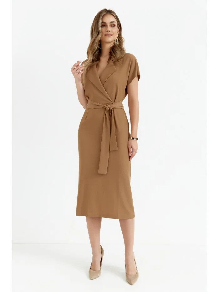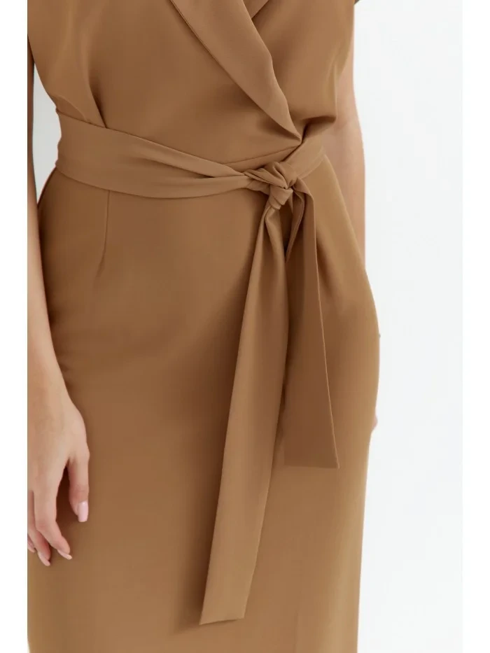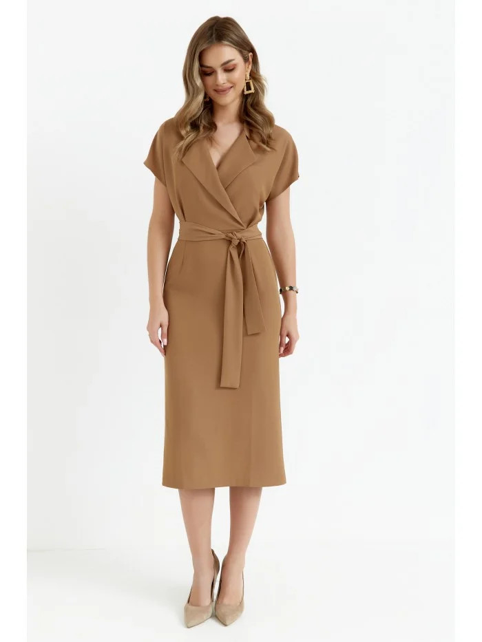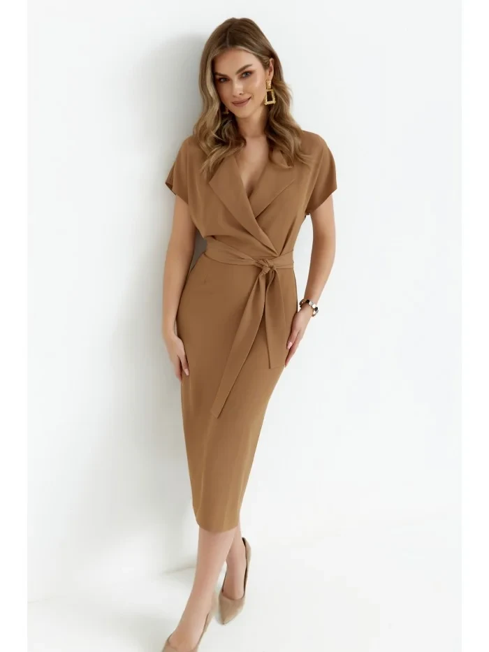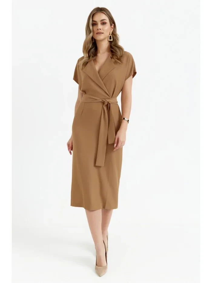 model 20589668 Košilové šaty s páskem na zavázání béžové - STYLOVE