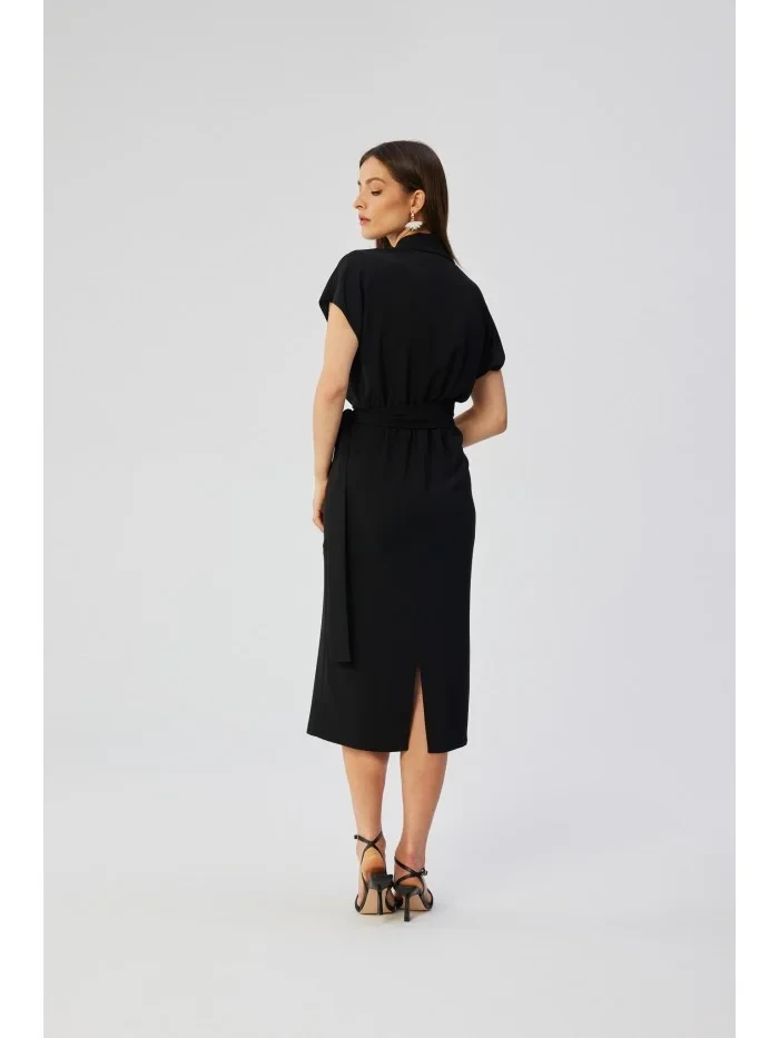 Přidání recenze k S363 Košilové šaty s páskem na zavázání - černé