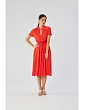 100% wiskoza PODROBNOSTI O PRODUKTU: tkaný materiál 100% viskóza šaty střední délky se zavazováním v pase áčkový design se zapínáním na knoflíky krátké rukávy s ohrnovacími šňůrkami bez podšívky naše modelka je 176 cm vysoká a nosí velikost S navrženo a vyrobeno v Polsku