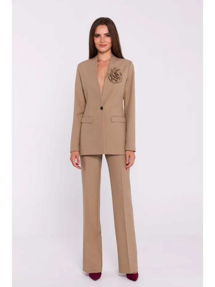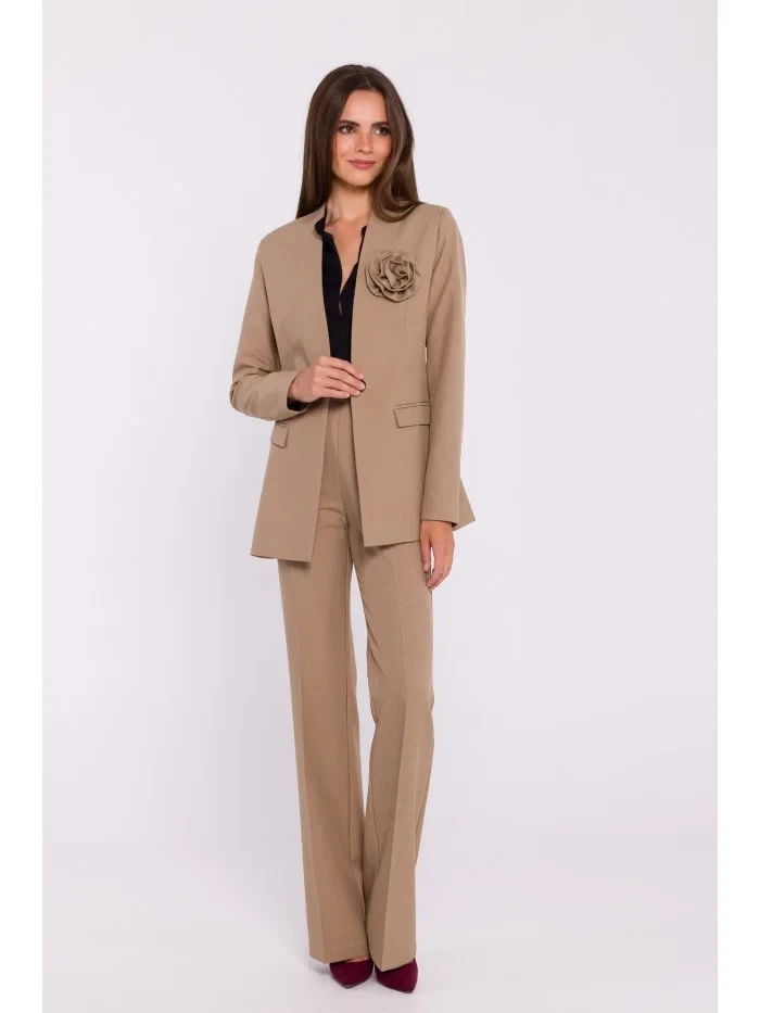 97% polyester 3% elastan DETAILY VÝROBKU: tkaný materiál sako na míru bez límečku zapínání na jeden knoflík ozdobné odnímatelné kapsy s květinovou klopou plně podšité náš model měří 174 cm a nosí velikost S