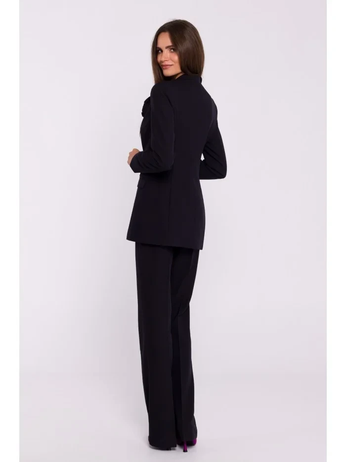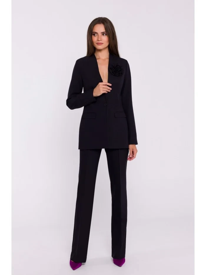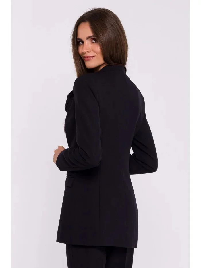 97% polyester 3% elastan DETAILY VÝROBKU: tkaný materiál sako na míru bez límečku zapínání na jeden knoflík ozdobné odnímatelné kapsy s květinovou klopou plně podšité náš model měří 174 cm a nosí velikost S