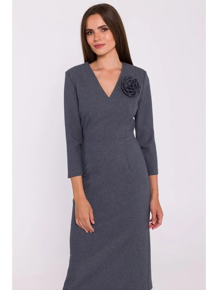 S372 Květinové tužkové šaty - šedé