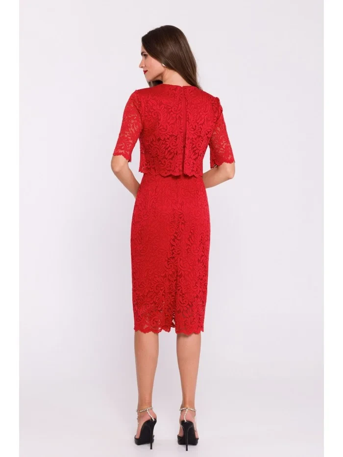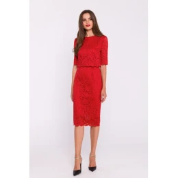 S379 Krajkové šaty s dvouvrstvým vrškem - červené
