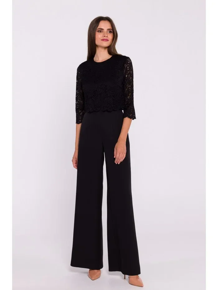 S381 Kombinéza s krajkovými detaily - černá