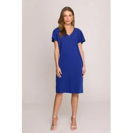 S392 Šaty uvolněného střihu s výstřihem do V - královská modř