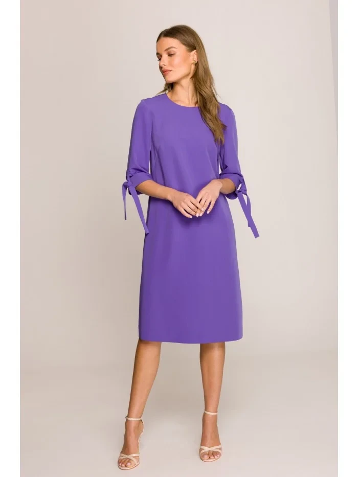 S393 Šaty áčkového střihu s vázacími rukávy - fialové