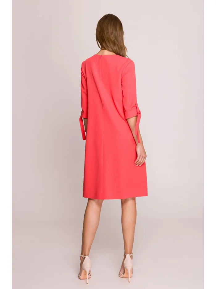 S393 Šaty áčkového střihu s vázacími rukávy - korálová barva
