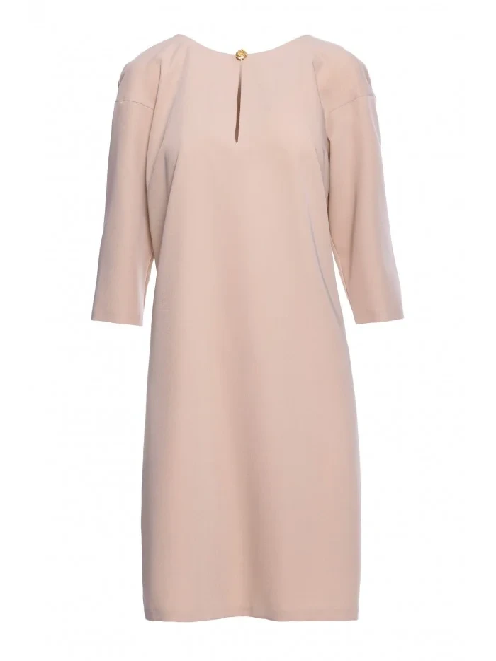 S394 Šaty uvolněného střihu s výstřihem s klíčovou dírkou - béžové