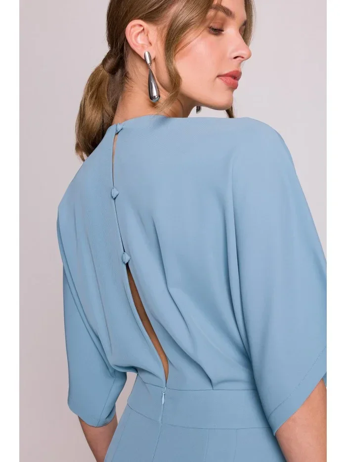 Přidání recenze k S395 Kombinéza s širokými nohavicemi a zavinovacím výstřihem - nebesky modrá