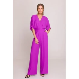 S395 Kombinéza se širokými nohavicemi a zavinovacím výstřihem - levandulová