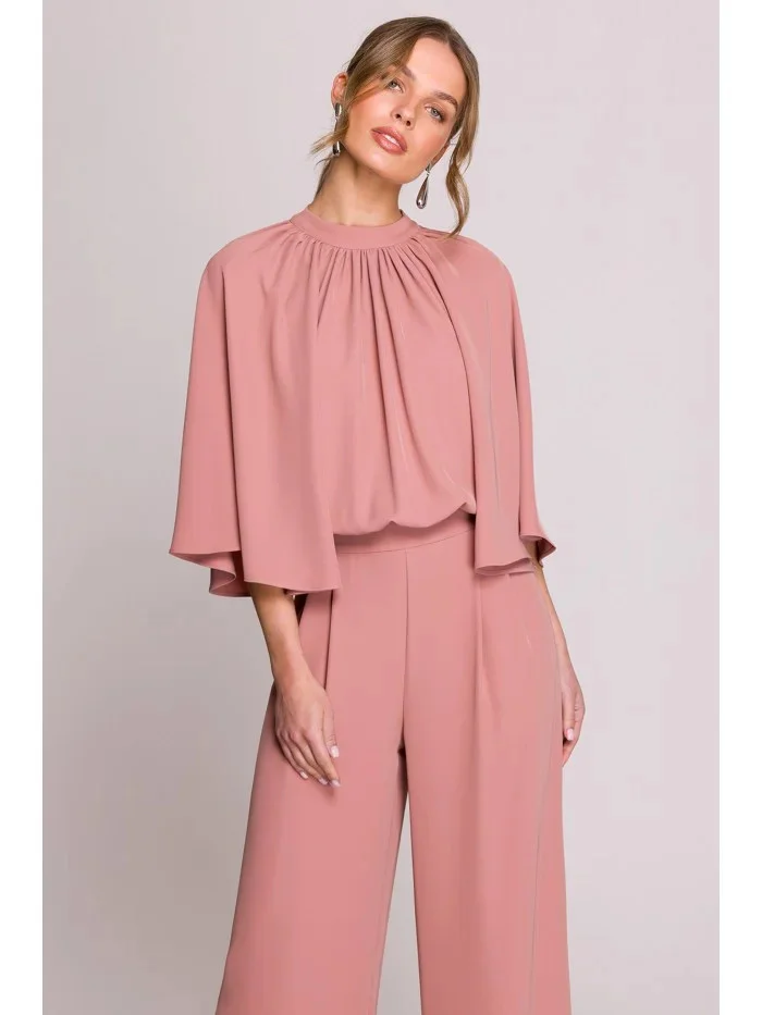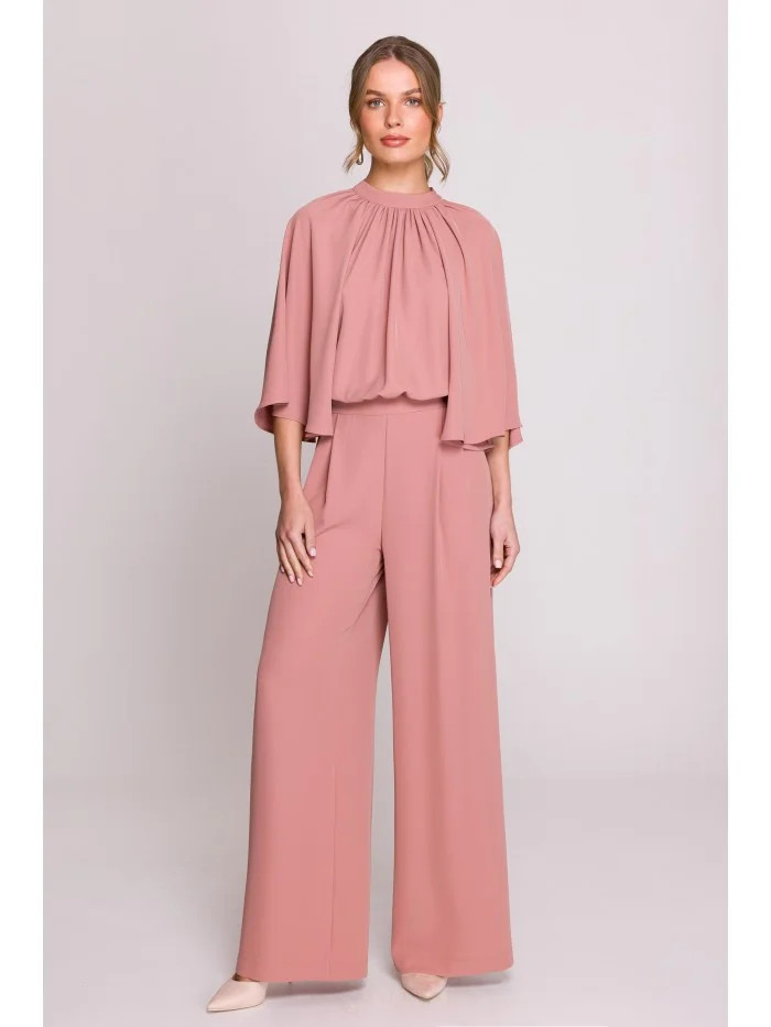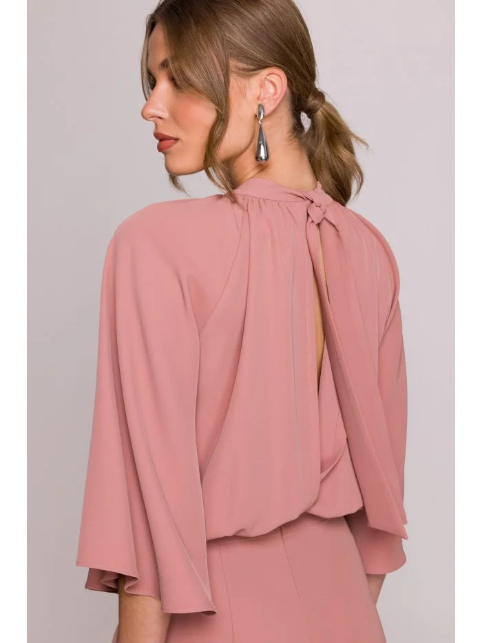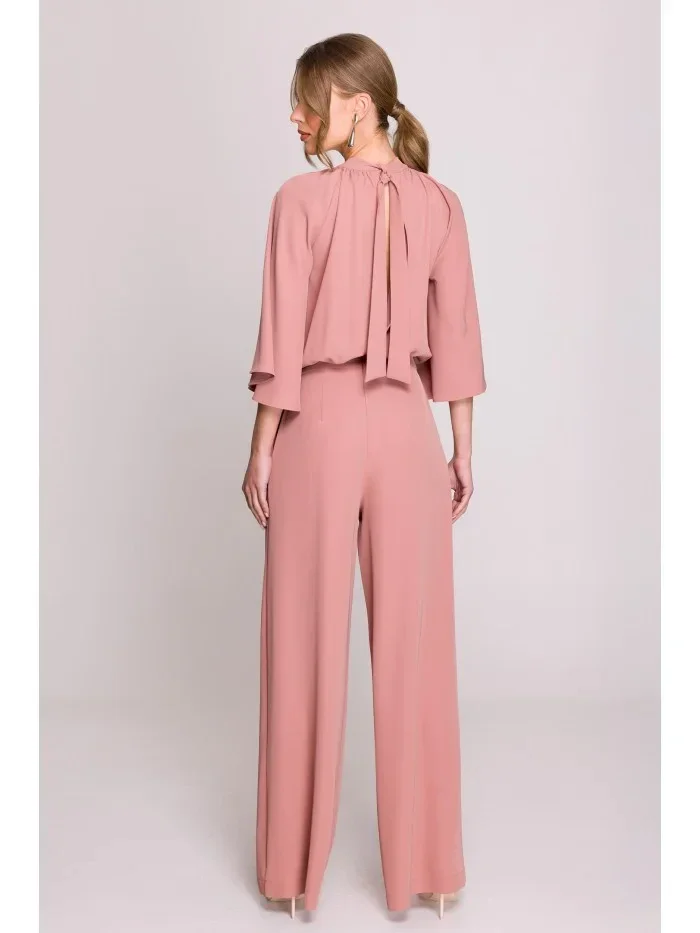 S397 Kombinéza s širokými rukávy a rozdělenými zády - růžová