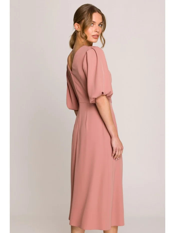 S399 Šaty s puff rukávy - růžové