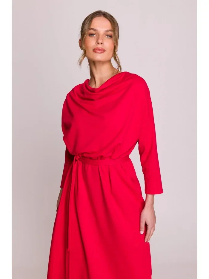 S403 Pletené šaty nadměrné velikosti - červené
