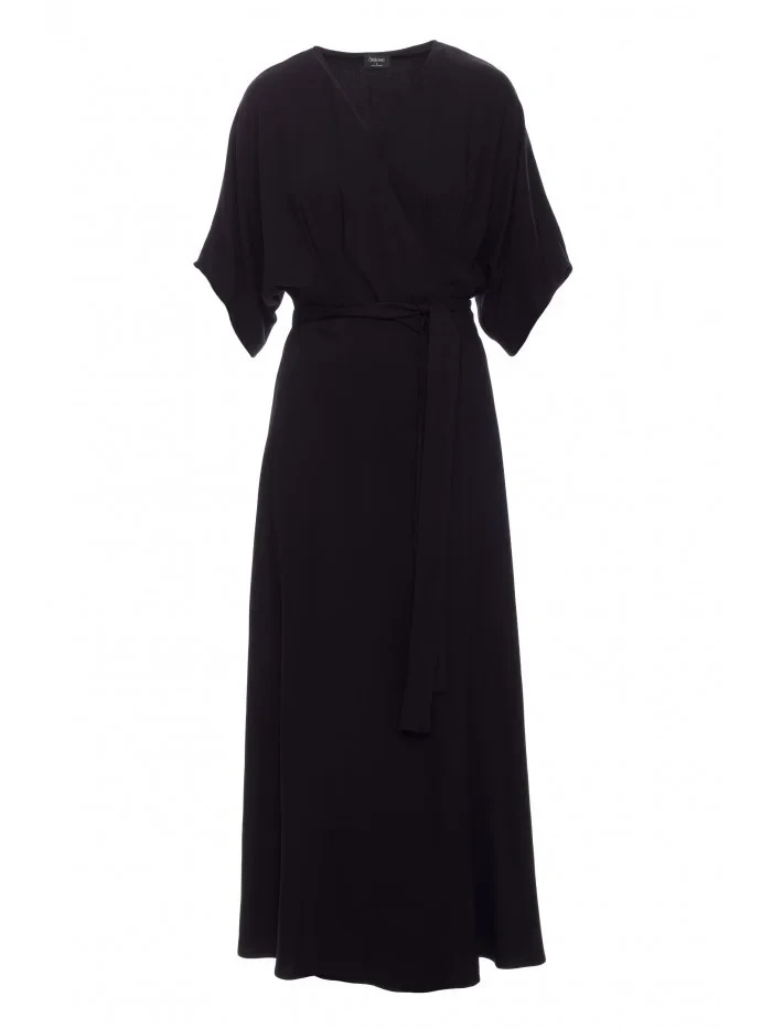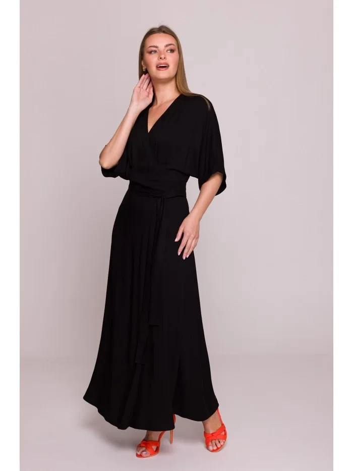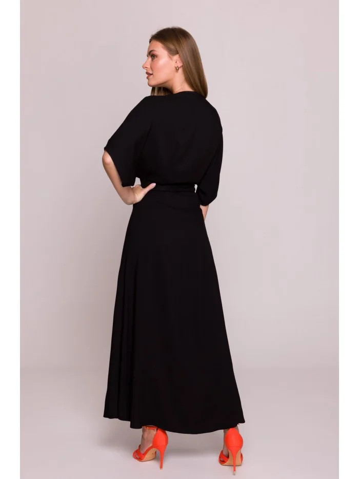 S406 Viskózové maxi šaty se zavinovacím vzorem - černé