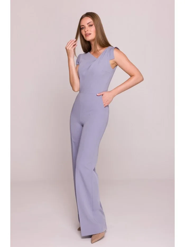 S407 Elegantní overal s asymetrickým výstřihem - holubičí šedá