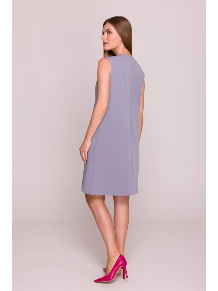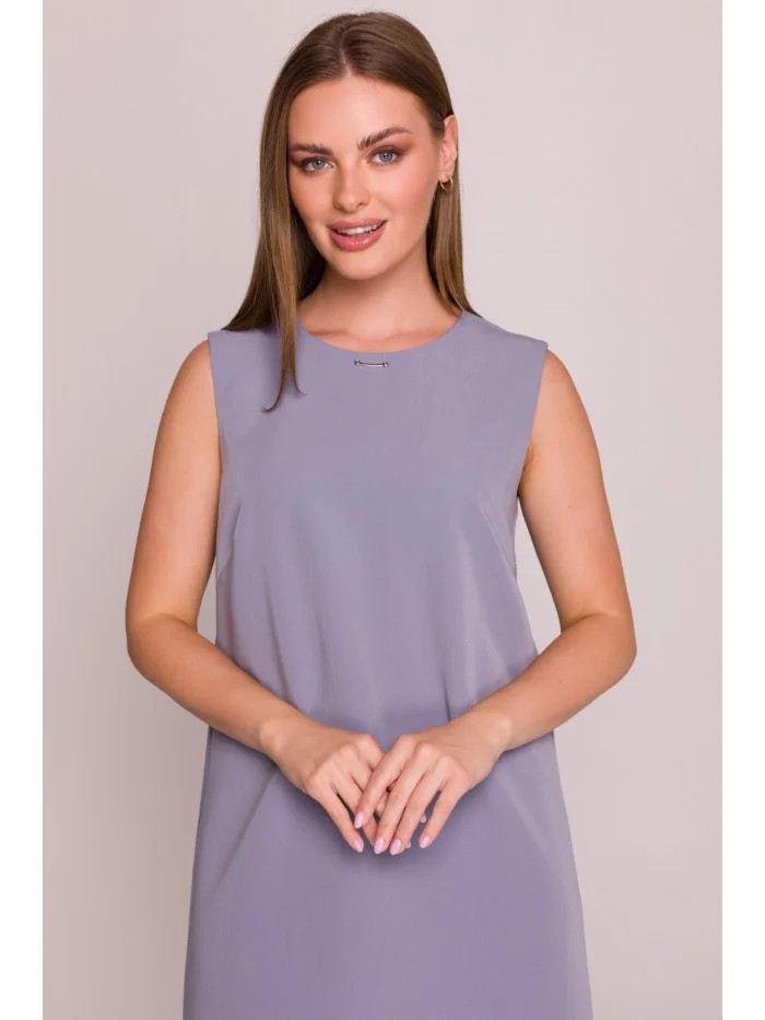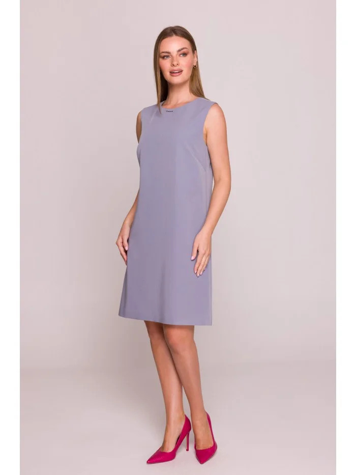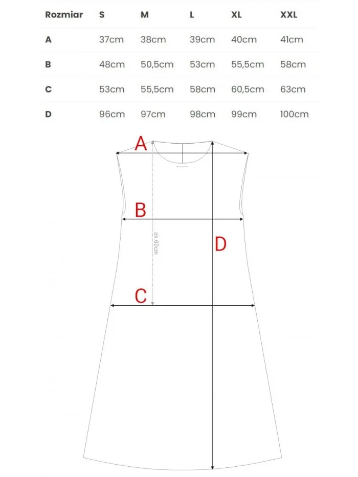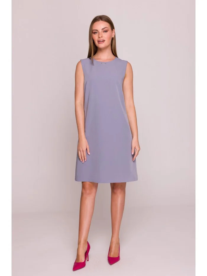 65% polyester 30% wiskoza 5% elastan Podšívka: 95% polyester 5% elastan Materiál: hladká, mírně elastická tkanina se saténovým povrchem PODROBNOSTI O VÝROBKU Výstřih: kulatý, přiléhající ke krku, s kovovou ozdobou uprostřed Rukávy: bez rukávů Zapínání: skrytý zip na zádech Kapsy: žádné Podšívka: s podšívkou Model: S408 Navrženo a vyrobeno v Polsku Modelka je vysoká 170 cm a má na sobě velikost S STYL A STŘIH Střih: silueta do A Tvar: volný střih Délka: nad kolena