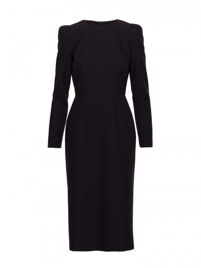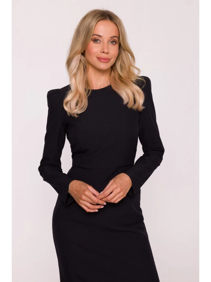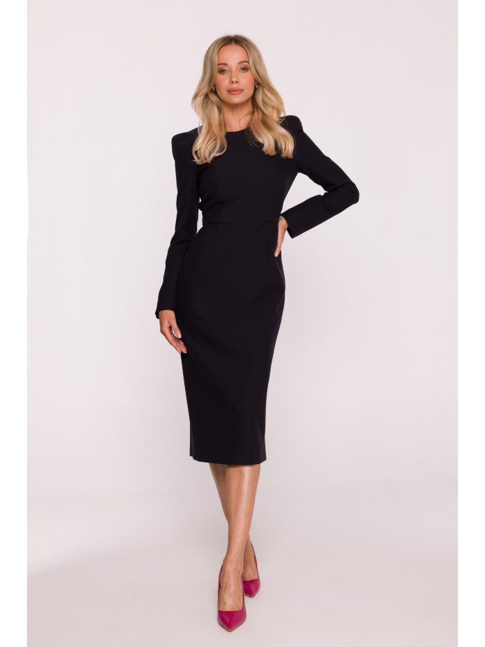 S412 Tužkové šaty s ozdobnými rameny - černé