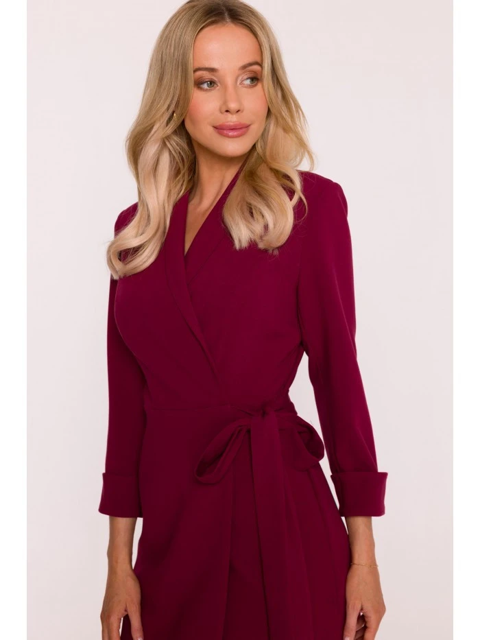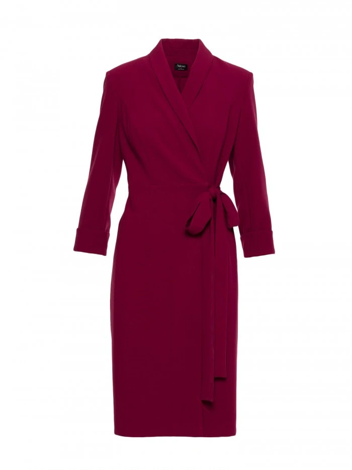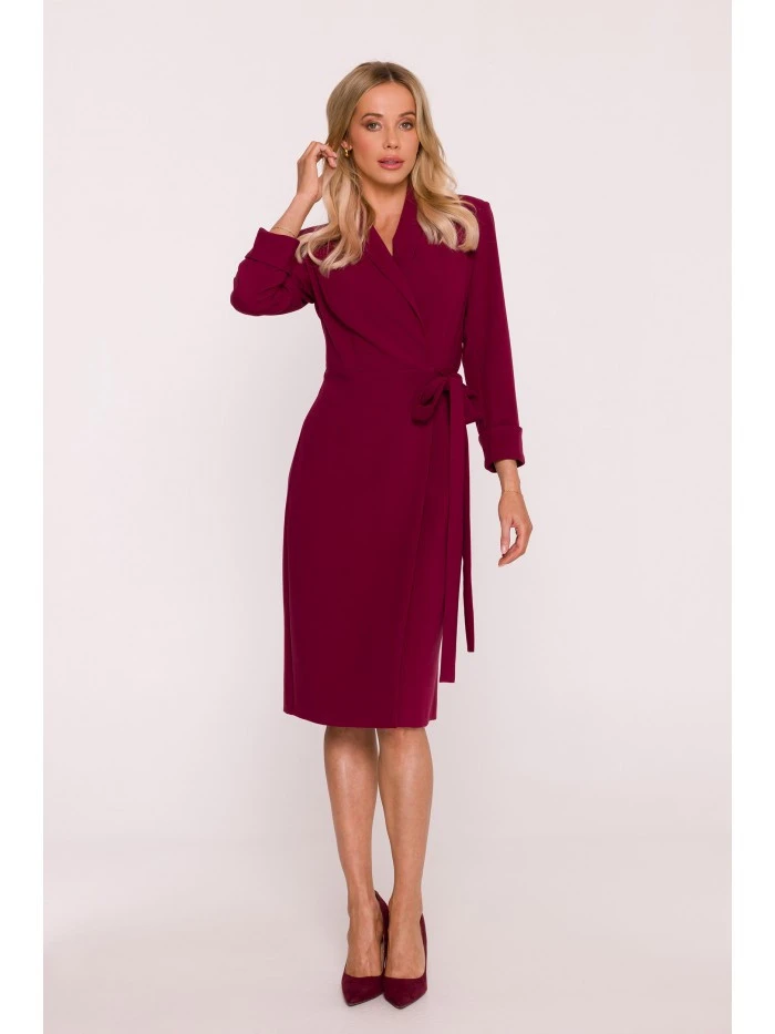 S415 Košilové šaty vázané v pase - bordó