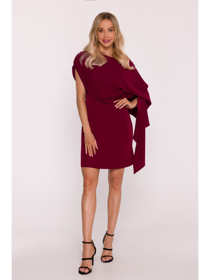 S423 Šaty s pláštěm - bordó