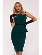 HLAVNÍ LÁTKA 65% polyester 30% wiskoza 5% elastan PODŠÍVKA 100% polyester LÁTKA: hladká tkanina PODROBNOSTI O PRODUKTU Výstřih: kulatý Rukávy: bez rukávů Sukně: vypasovaná, tužkového střihu Pas: zvýrazněný páskem a peplumem, který decentně zakrývá boky a bříško Zapínání: dva skryté zipy na zádech Doplňky: tenký kontrastní pásek zapínaný na knoflík Model: S427 Navrženo a vyrobeno v Polsku Modelka měří 174 cm a nosí velikost S STYL A STŘIH Styl: elegantní tužkové šaty s peplumem Tvar: vypasovaná sukně, vrchní díl s peplumem vytvářející ženské proporce Délka: ke kolenům