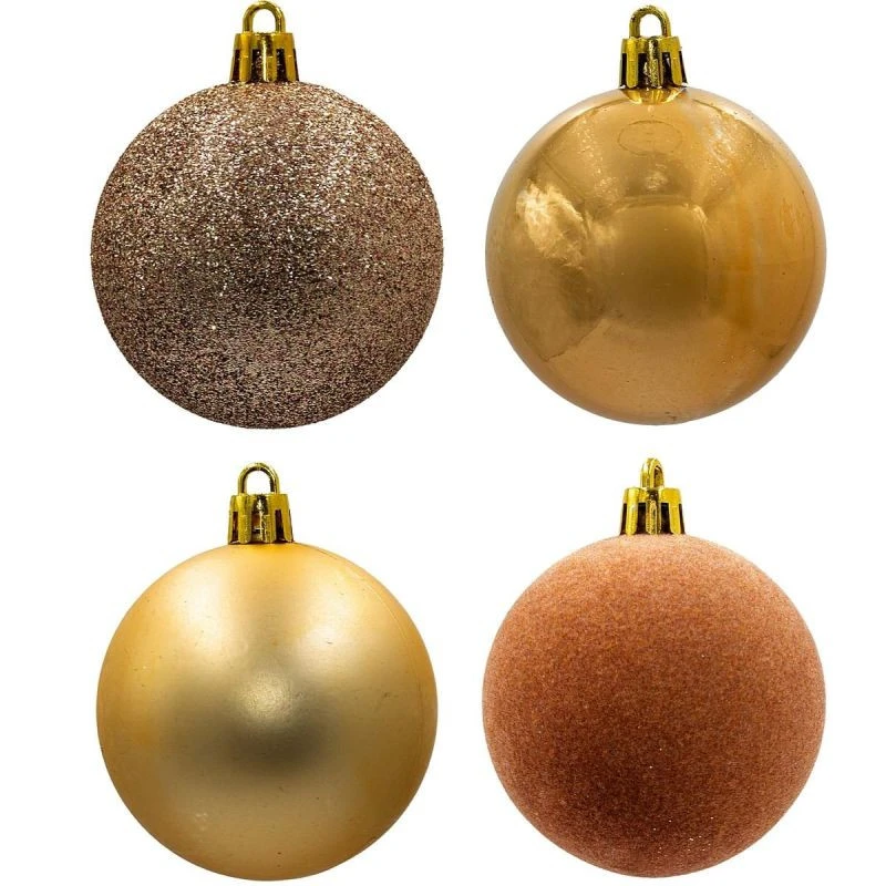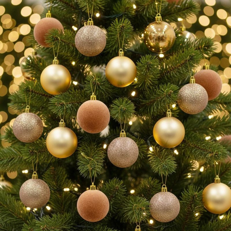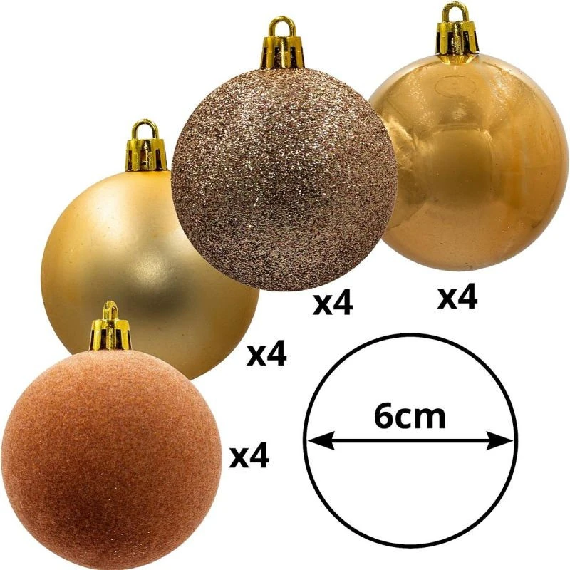 Zlato, které potěší! Ozdobte svůj vánoční stromeček sadou 16 ozdob ve čtyřech luxusních povrchových úpravách a vytvořte sváteční atmosféru jako z katalogu interiérového designu.