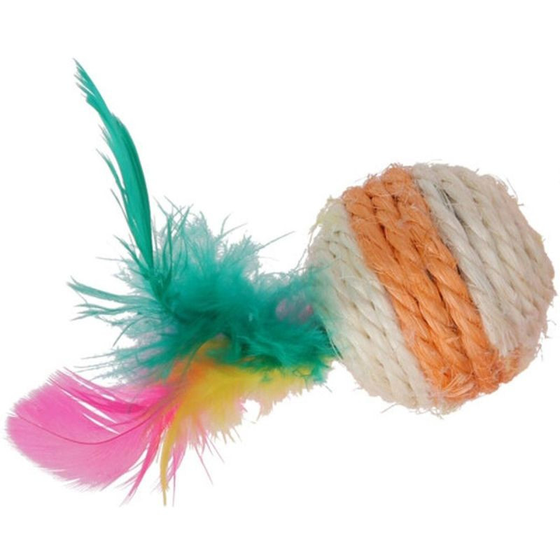 - Součástí balení: péřová kulička, 2 chrasticí kuličky, chrastítko, látková rybička na provázku, sisalová kulička