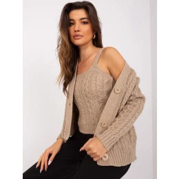 Tmavě béžová dvoudílná pletená souprava .