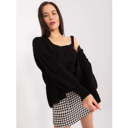 Černá pletená souprava s buffovými rukávy .