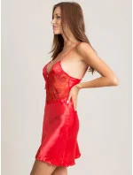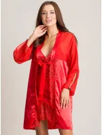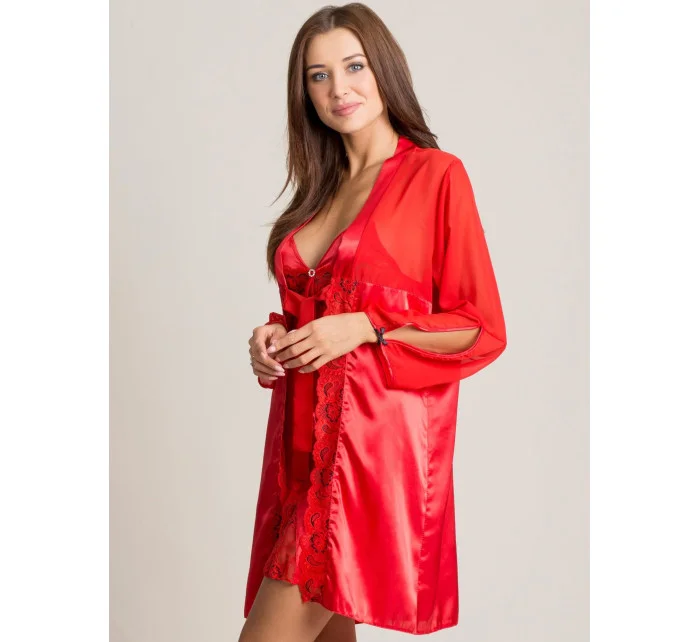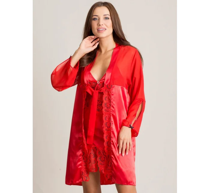 Červená saténová souprava spodního prádla.