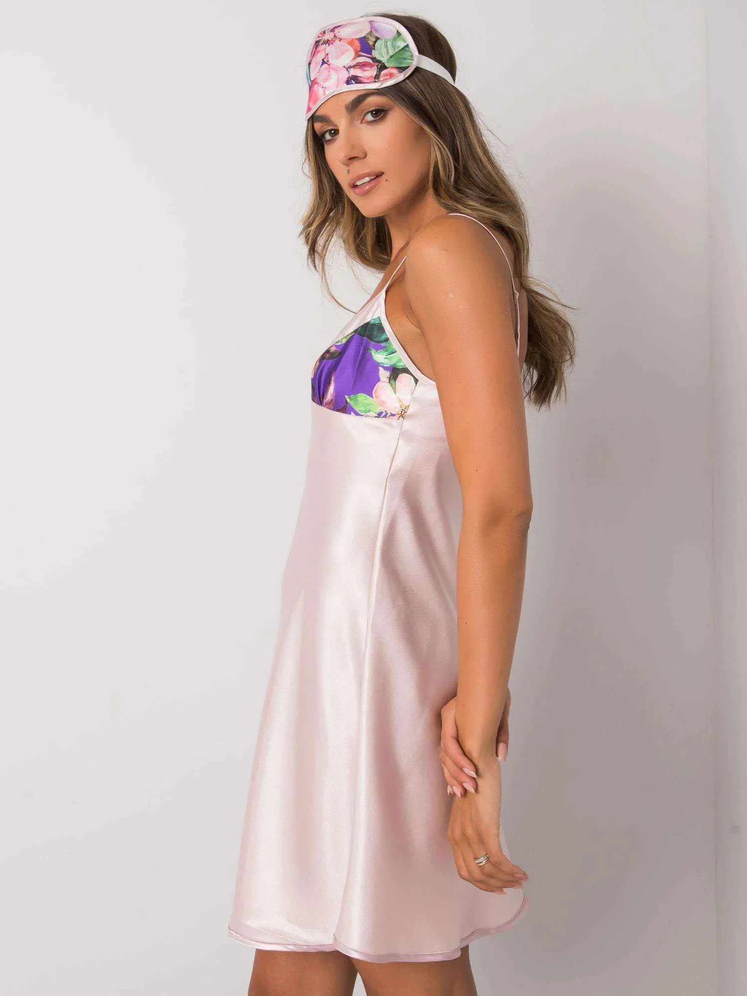 sada obsahuje: noční košili, župan, šátek na oči