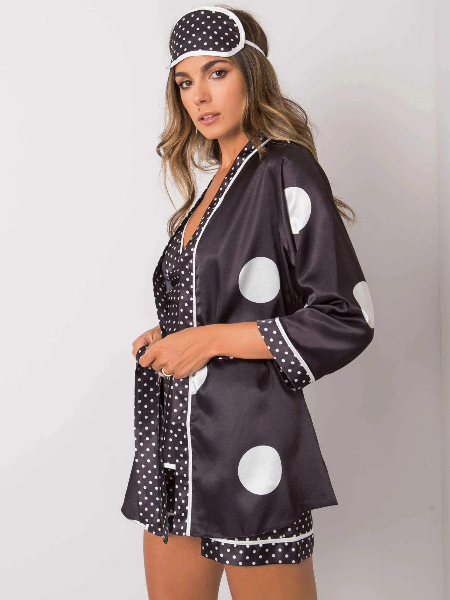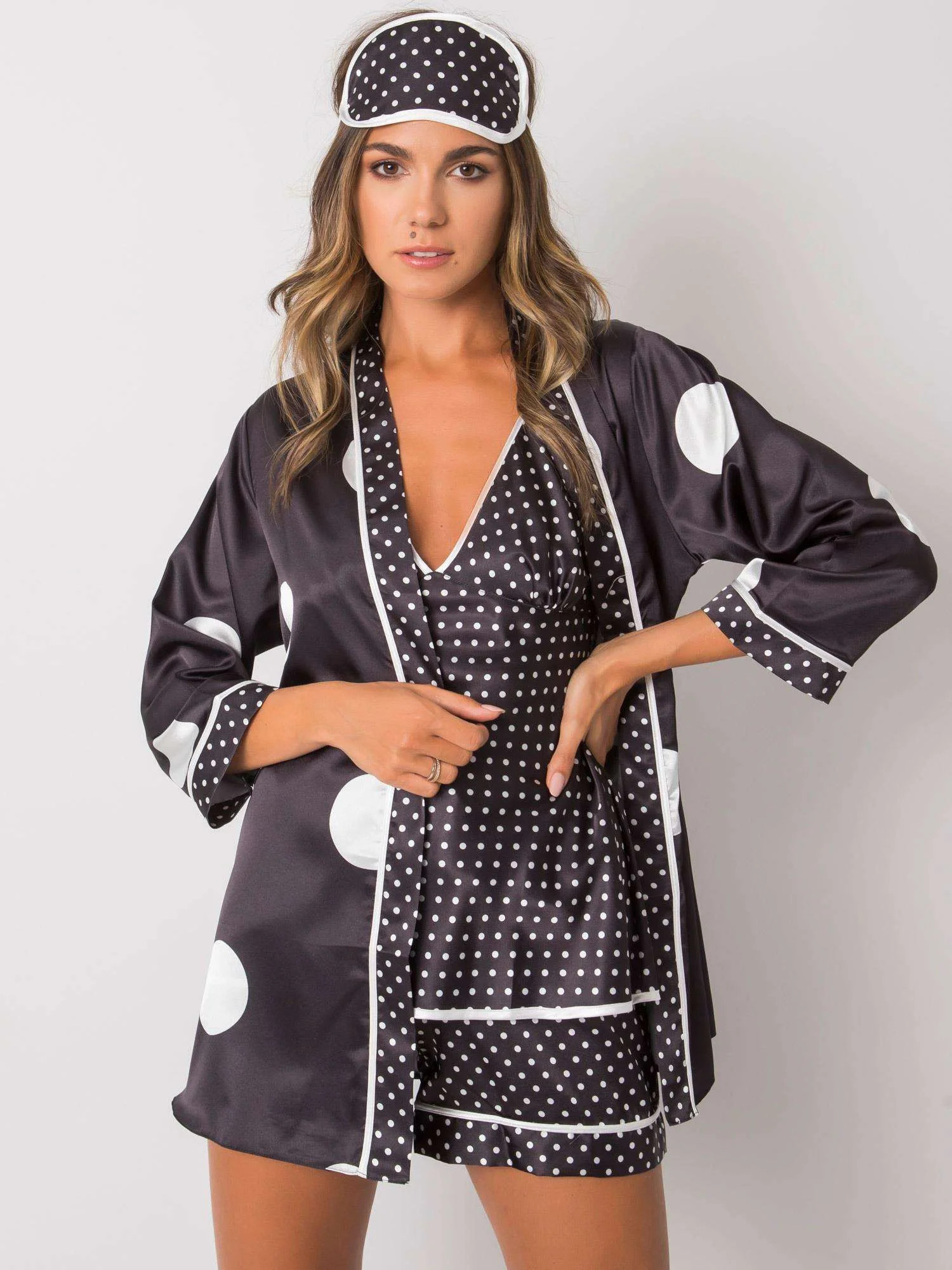 Černá puntíkovaná ložní souprava.