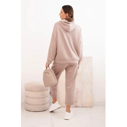 Sada dámská máslová mikina s kapucí a kalhoty s páskem tmavě béžová